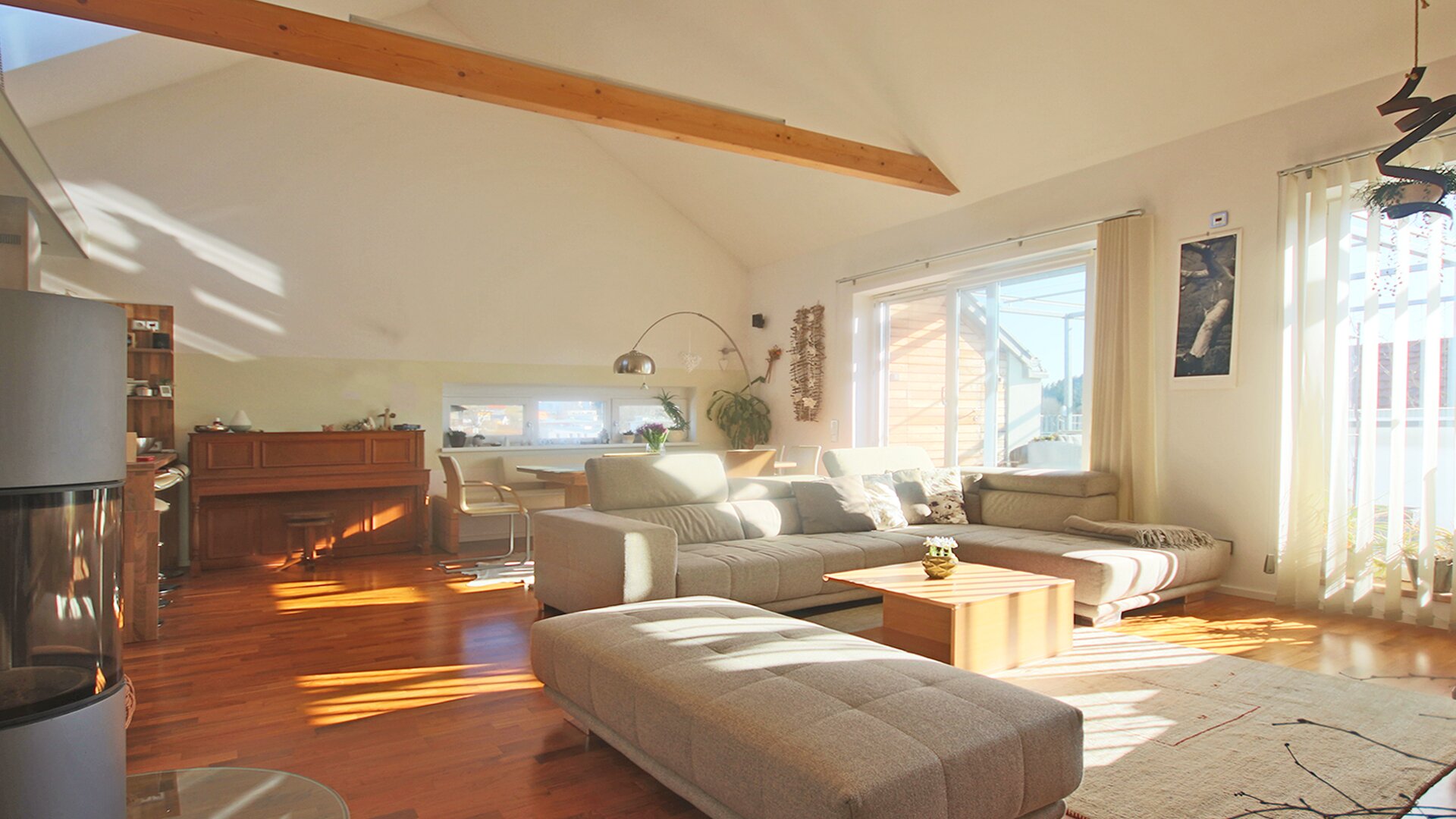 Die sonnige Terrasse, die vom Wohnzimmer, als auch von allen Schlafzimmern begehbar ist, ist ein wahrer Wohlfühlort. Besonders die elektrische Beschattung bietet sowohl an heißen als auch an regnerischen Tagen Schutz.