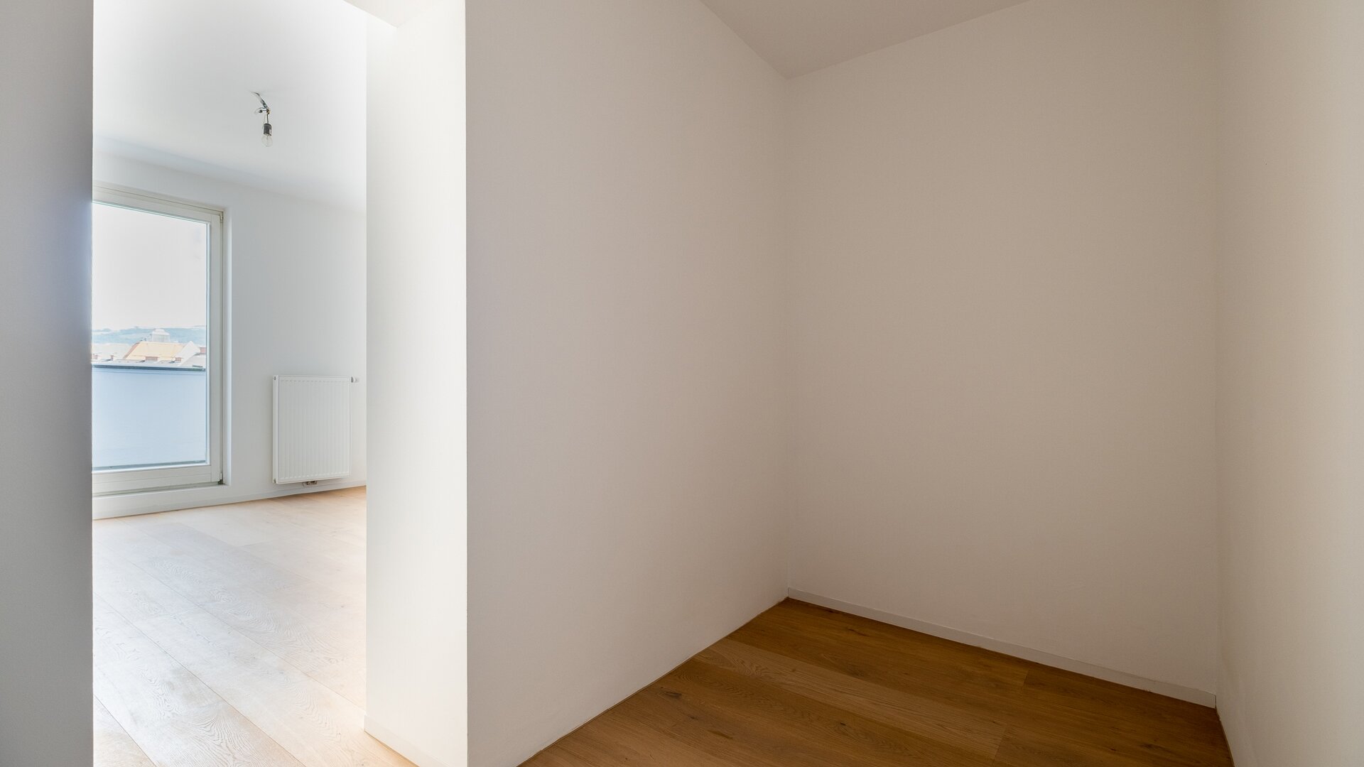 Der helle und offene Wohn-Essbereich mit Balkon schafft eine einladende Atmosphäre, perfekt für gesellige Momente und entspannte Stunden. Das Schlafzimmer beeindruckt nicht nur mit einer eigenen Terrasse, sondern auch mit einem angrenzenden Ankleideraum. Ein zusätzliches Zimmer bietet die Möglichkeit, ein Home-Office einzurichten oder nach persönlichen Bedürfnissen zu gestalten. Das Badezimmer verfügt eine Dusche mit separatem WC.