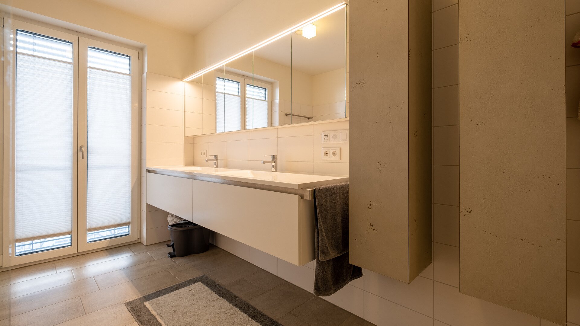 Ebenso wurde das Badezimmer perfekt in Szene gesetzt und führt den außerordentlich guten Stil fort.