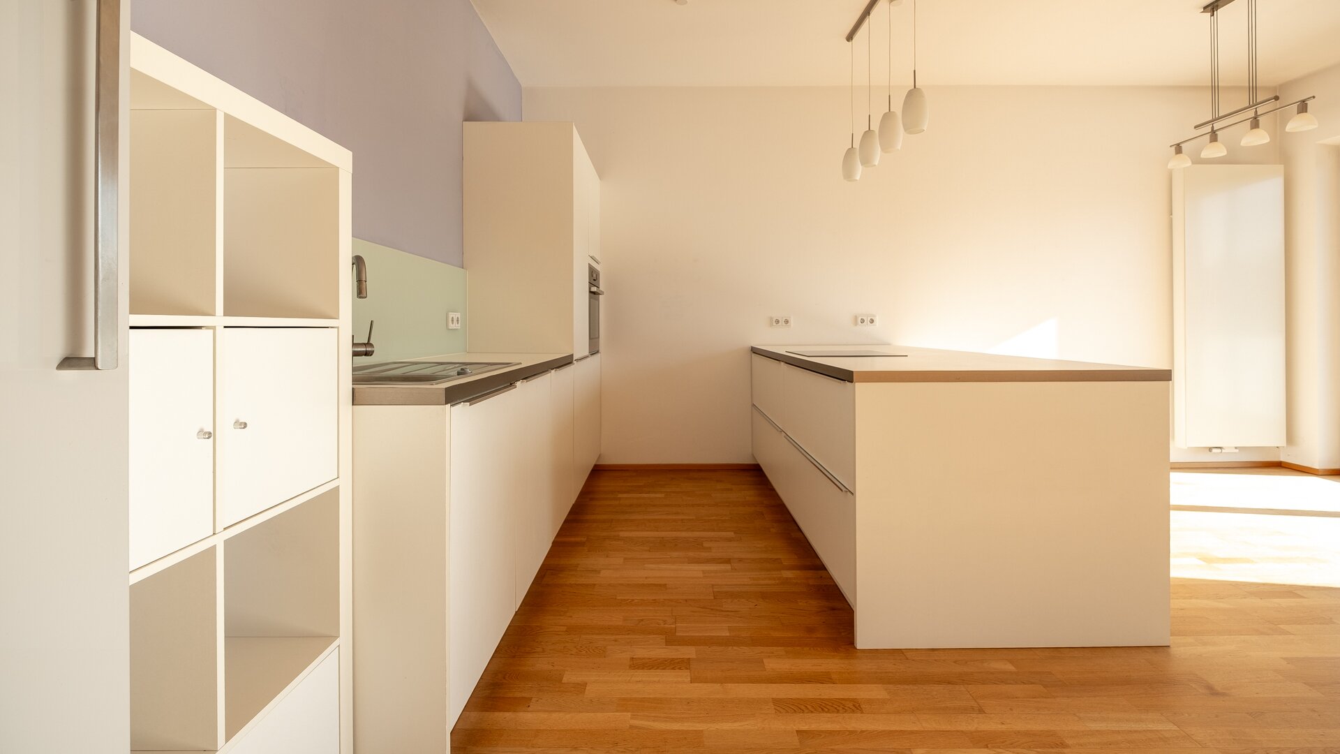 Die südwestliche Ausrichtung sorgt für optimale Sonneneinstrahlung und lichtdurchflutete Räume, während der schöne, ruhige Innenhof eine Oase der Entspannung mitten im Zentrum bietet. Besonders hervorzuheben ist der große Wohn-, Ess- und Küchenbereich, der das Herzstück der Wohnung bildet und viel Platz für gemeinsames Leben und stilvolles Wohnen eröffnet.