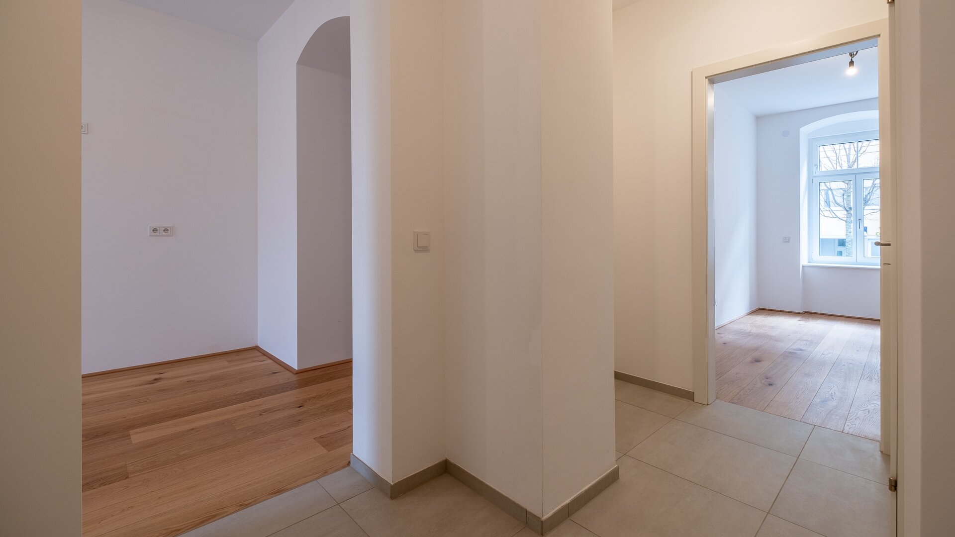 In einem kürzlich sanierten Mehrfamilienhaus, zentral gelegen nahe der Linzer Landstraße, präsentiert sich diese moderne Zwei-Zimmer-Wohnung mit einer Wohnfläche von 48,34 Quadratmetern mit einer optimalen Raumaufteilung.