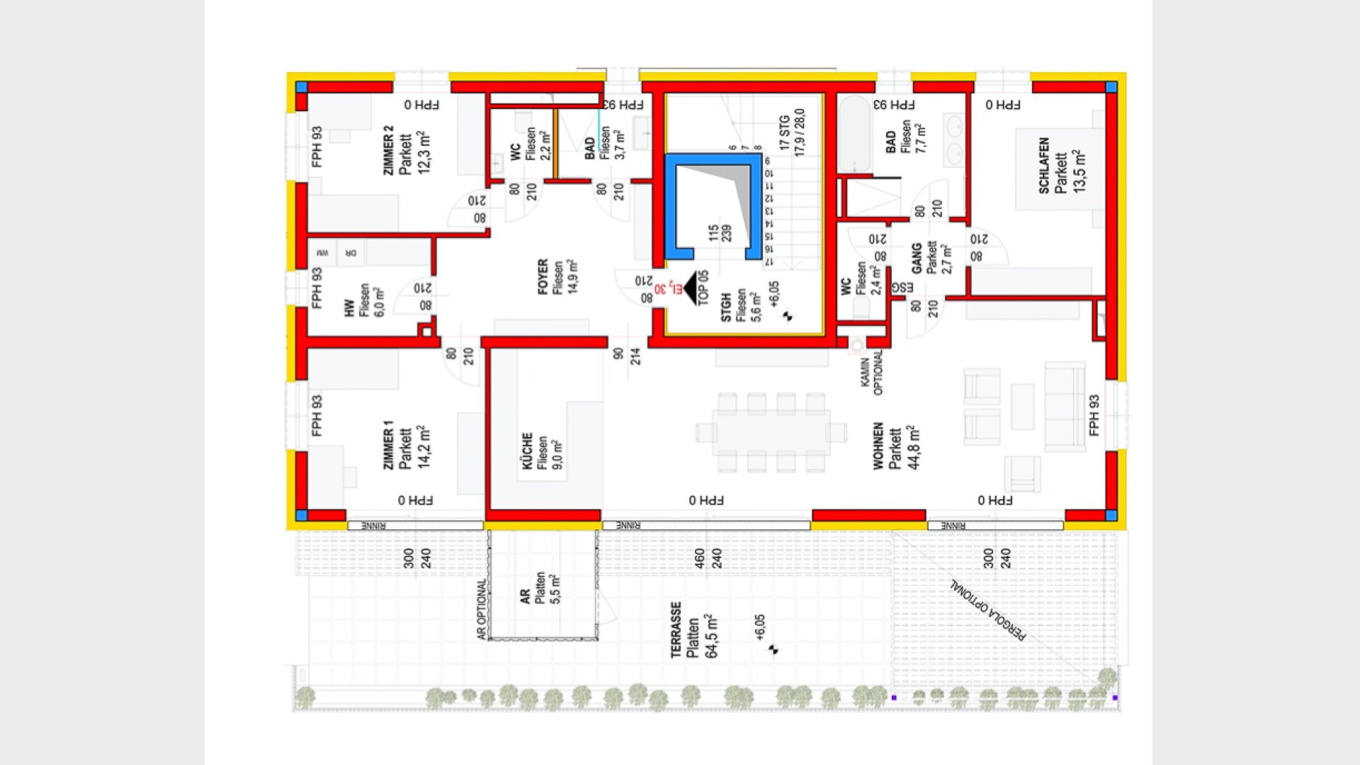 Jeder Einheit ist zudem ein Kellerabteil und zwei Tiefgaragenplätze zugeordnet zu je €22.000,-