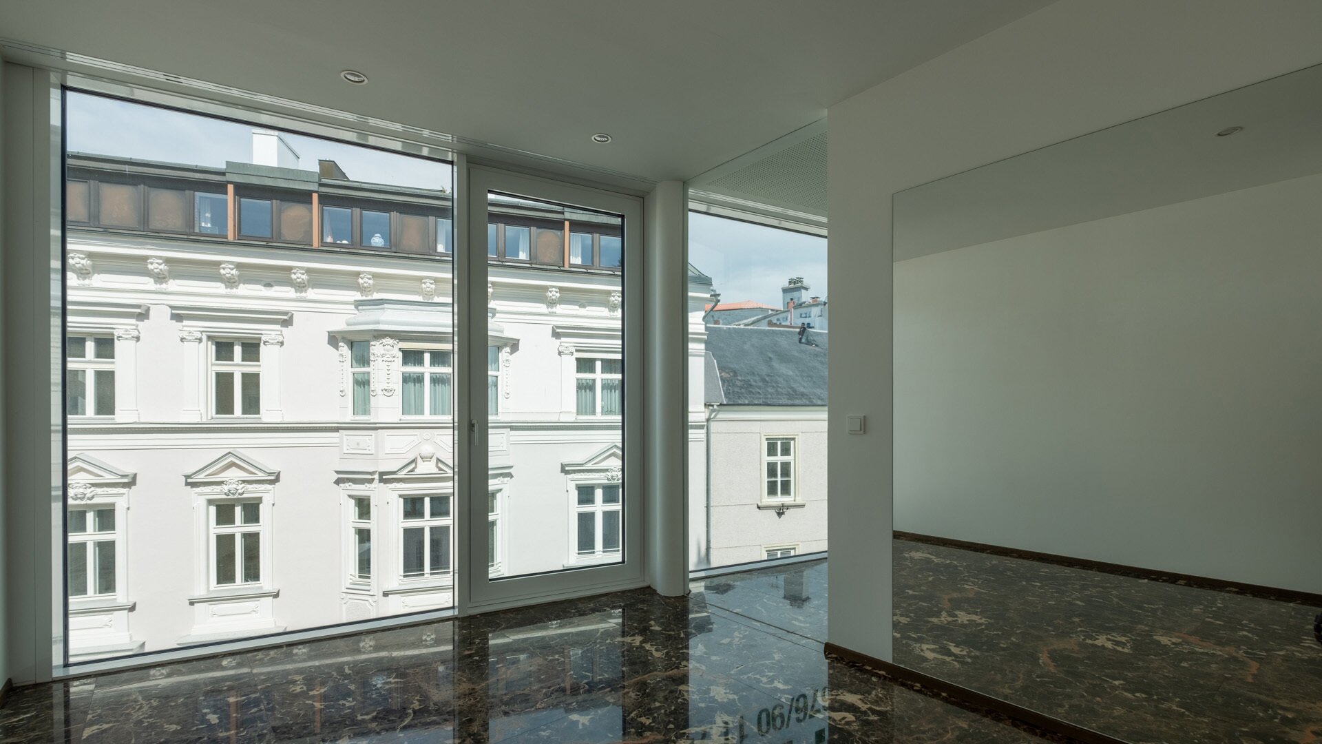 Bereits das moderne Stiegenhaus mit hochwertigen Materialien vermittelt den gehobenen Anspruch des Hauses. Ein Lift bringt Sie komfortabel bis vor die Wohnungstür. Im Inneren überzeugen klare Linien, großzügige Fensterflächen und elegante Details.