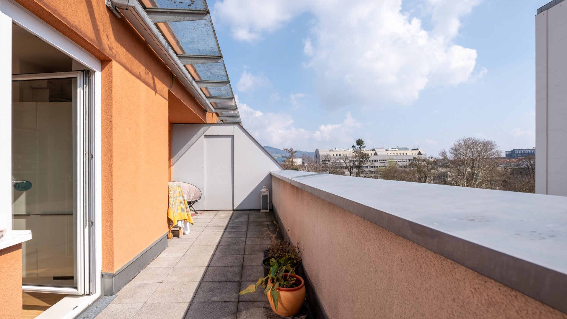 Mit beeindruckenden 133 m² Wohnfläche erstreckt sich diese lichtdurchflutete Wohnung über ein großzügiges Raumkonzept, das Ihnen genügend Platz für individuelle Gestaltungsmöglichkeiten bietet. Genießen Sie die Vorzüge eines stilvollen Lebensstils mit zwei Außenbereichen, wo Sie entspannte Stunden im Freien verbringen können. Die Nord- und Südterrrasse laden dazu ein, die Sonne zu genießen und den Stadtblick zu bewundern.