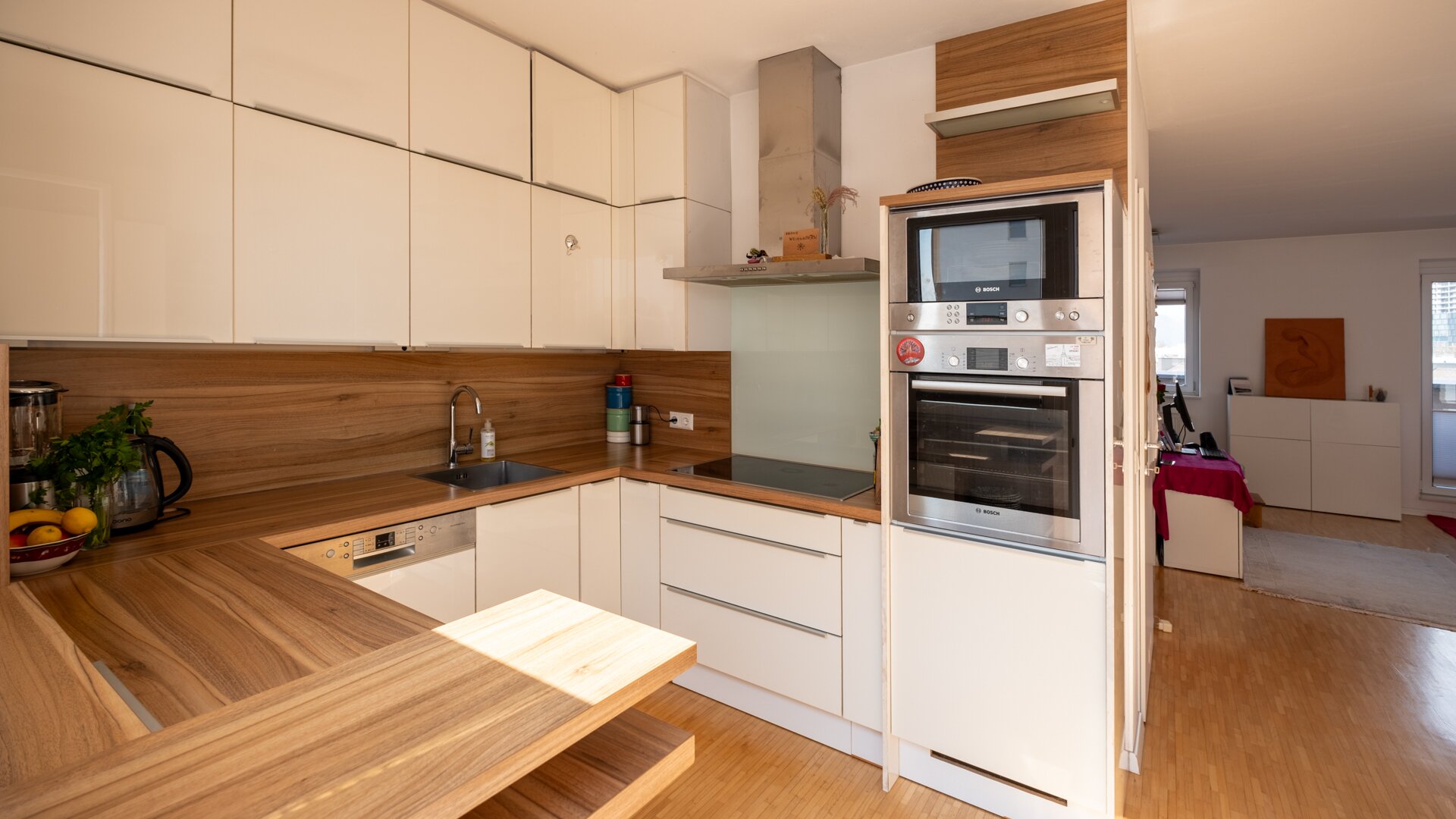 Die Wohnung ist mit einer hochwertigen Einbauküche ausgestattet. Ob für gemütliche Abende mit Freunden oder für das tägliche Familienleben – hier finden Sie den perfekten Raum. Das Badezimmer, ausgestattet mit einer komfortablen Badewanne, bietet Ihnen die Möglichkeit, nach einem langen Tag zu entspannen und neue Energie zu tanken.
