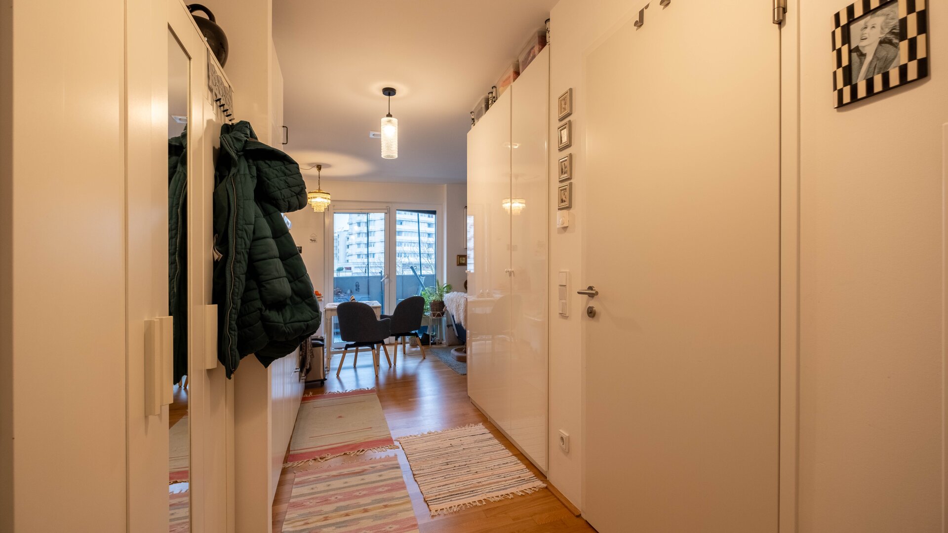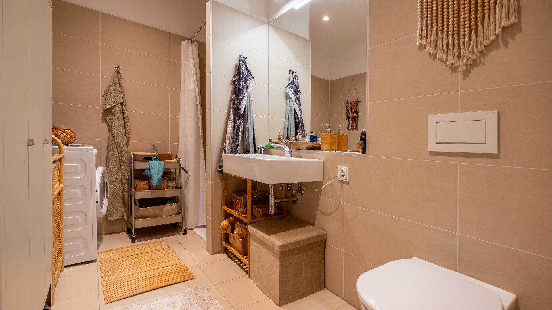 Die Wohnung ist nicht nur hochwertig ausgestattet, sondern auch sicher. Ein modernes Sicherheitssystem mit Kameras sorgt für ein gutes Gefühl, während der Lasten- und Personenaufzug den Zugang zu Ihrer neuen Wohnung erleichtert. Der praktische Wasch- und Trockenraum ist eine weitere nützliche Ergänzung, die Ihnen den Alltag erleichtert.