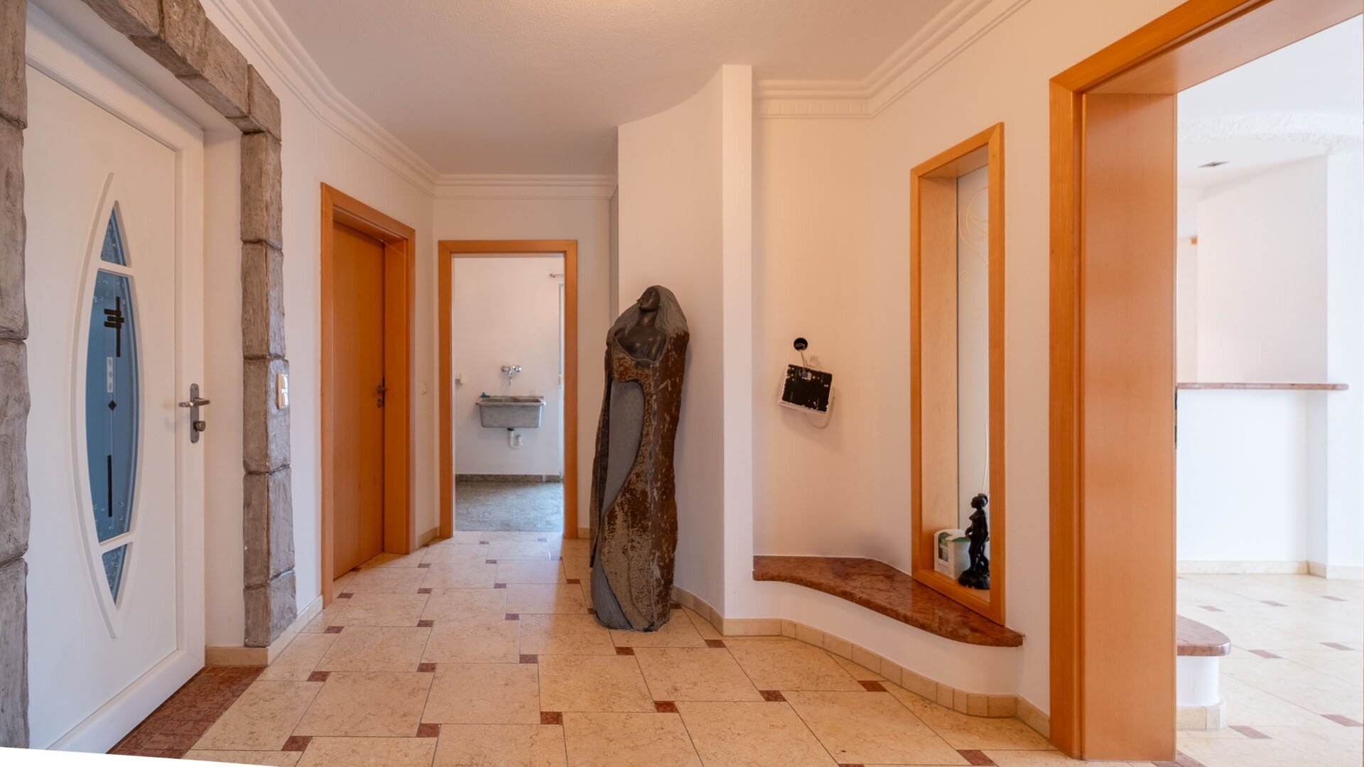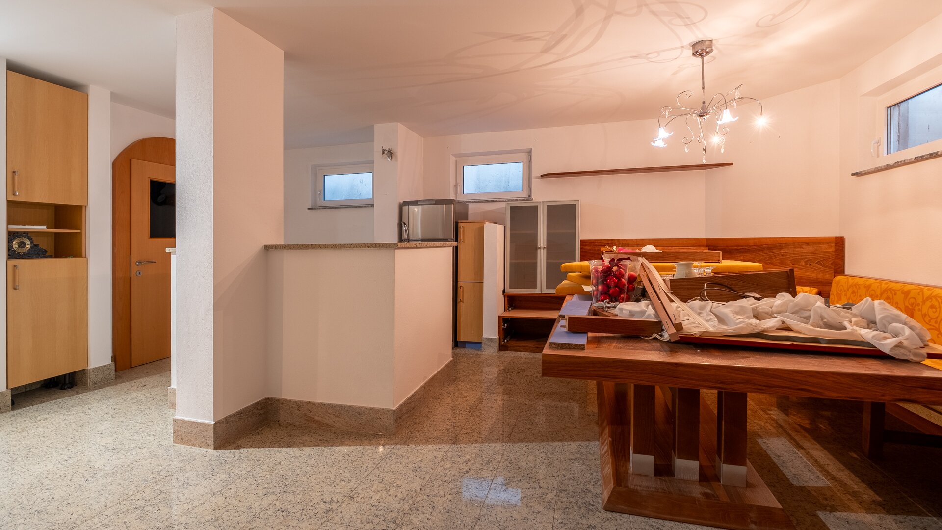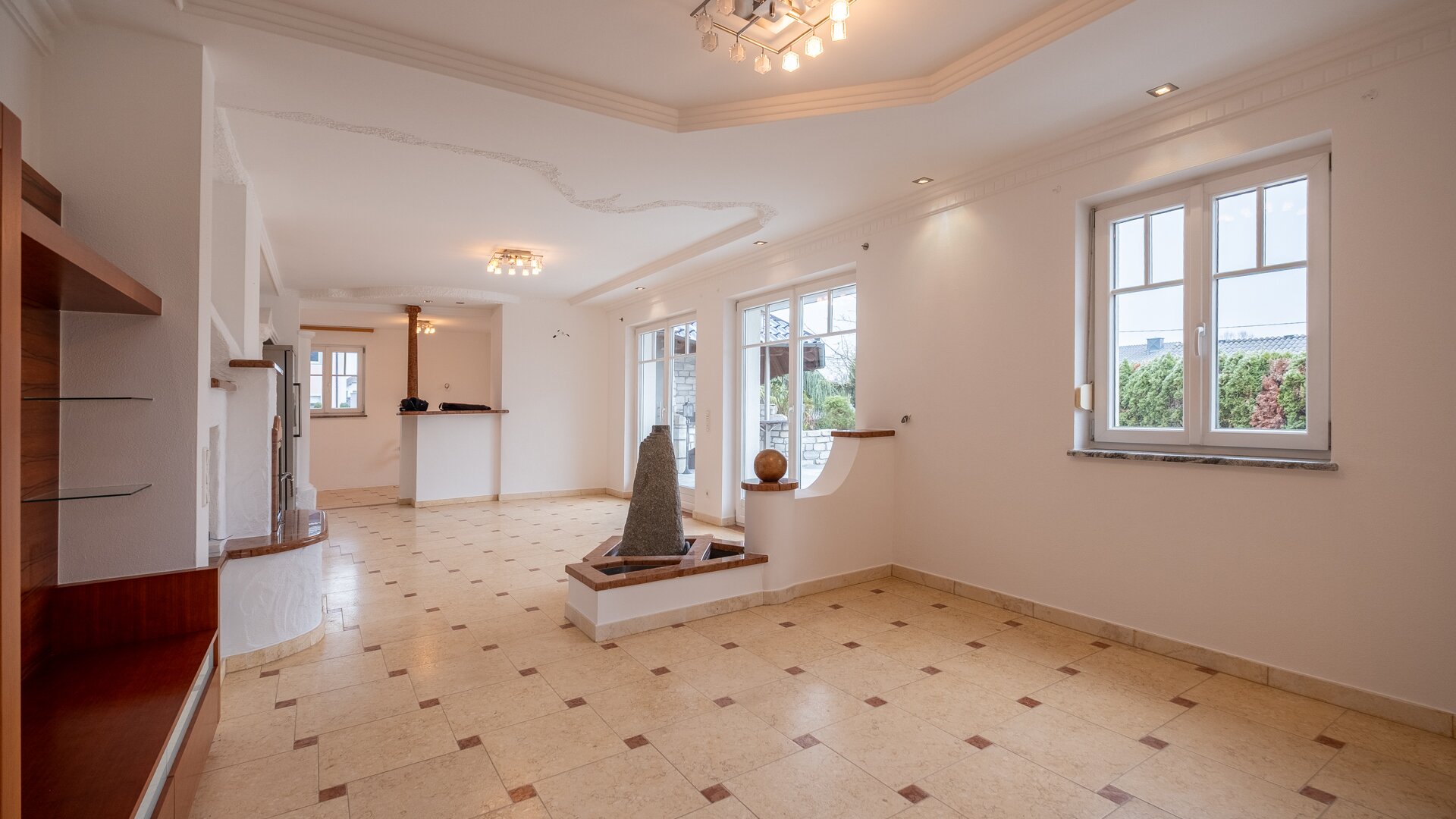 Die hochwertige Ausstattung, wie die stilvolle Steinmaterialen, schaffen eine elegante Atmosphäre, während die Fußbodenheizung für wohlige Wärme sorgt. Der Kamin im Wohnzimmer bietet an kalten Winterabenden eine gemütliche Atmosphäre und lädt zum Verweilen ein. Die moderne Zentralheizung garantiert zudem eine angenehme Temperatur zu jeder Jahreszeit.