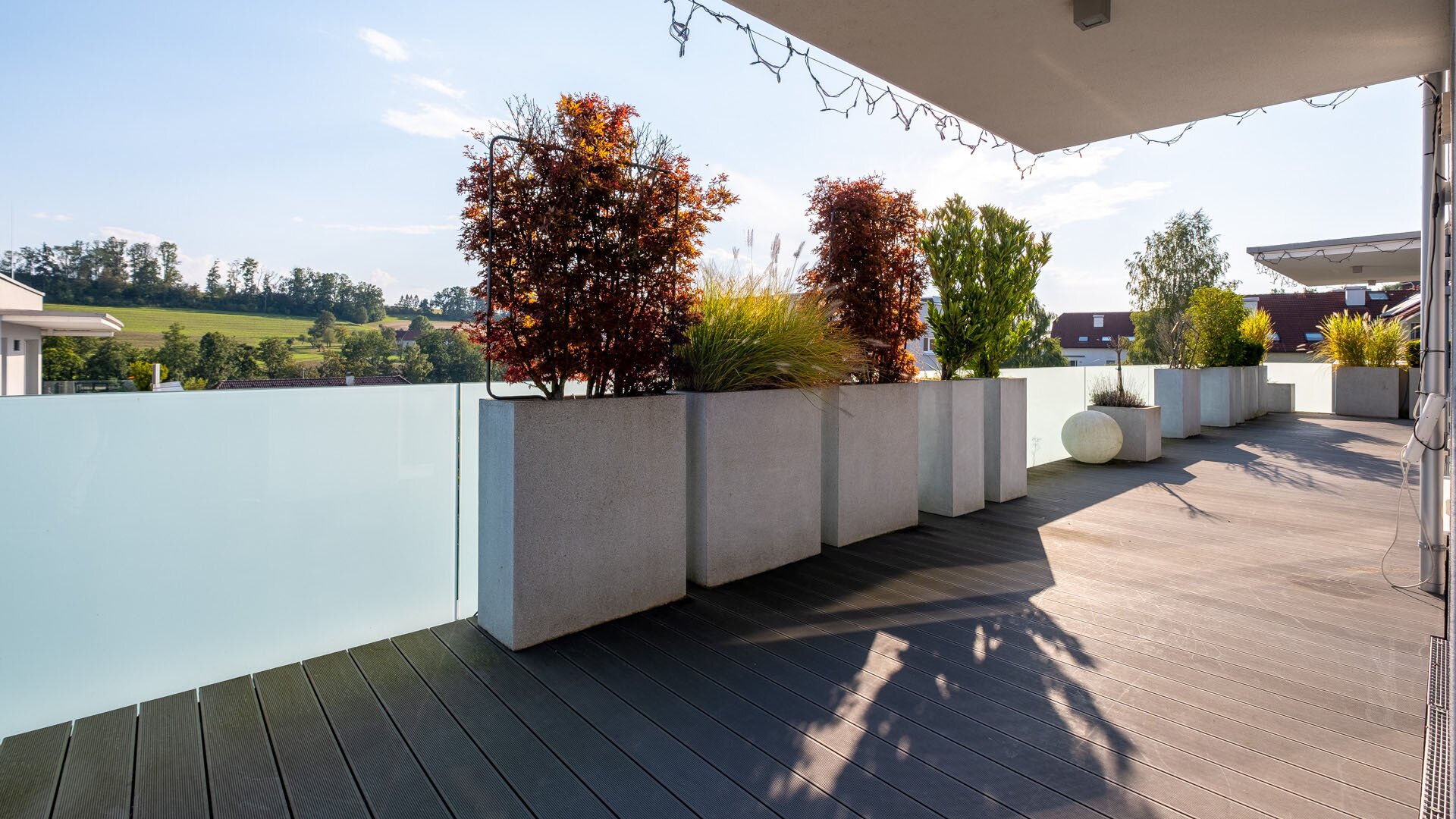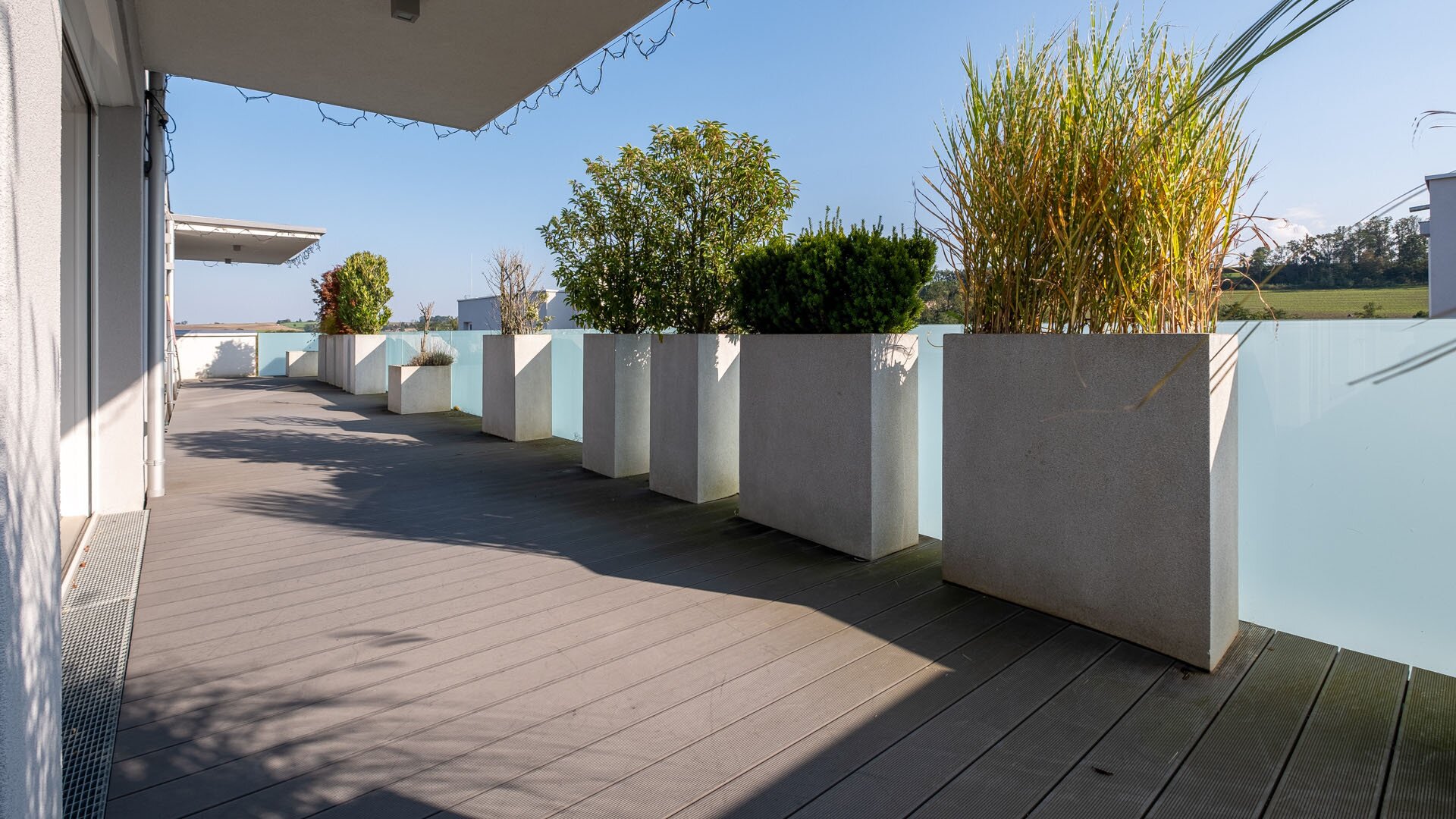 Das Highlight dieser Immobilie ist zweifellos nicht nur die hochwertige Ausstattung, auch die 105m² große Terrasse in alle Himmelsrichtungen, die Ihnen einen atemberaubenden Blick über die Dächer von Neuhofen bietet. Hier können Sie gemütliche Stunden mit Familie und Freunden verbringen oder einfach nur die Ruhe und Idylle genießen. Die Dachterrasse bietet zudem viel Platz für Ihre individuelle Gestaltungsideen, sei es ein gemütlicher Loungebereich oder ein grüner Urban Garden.