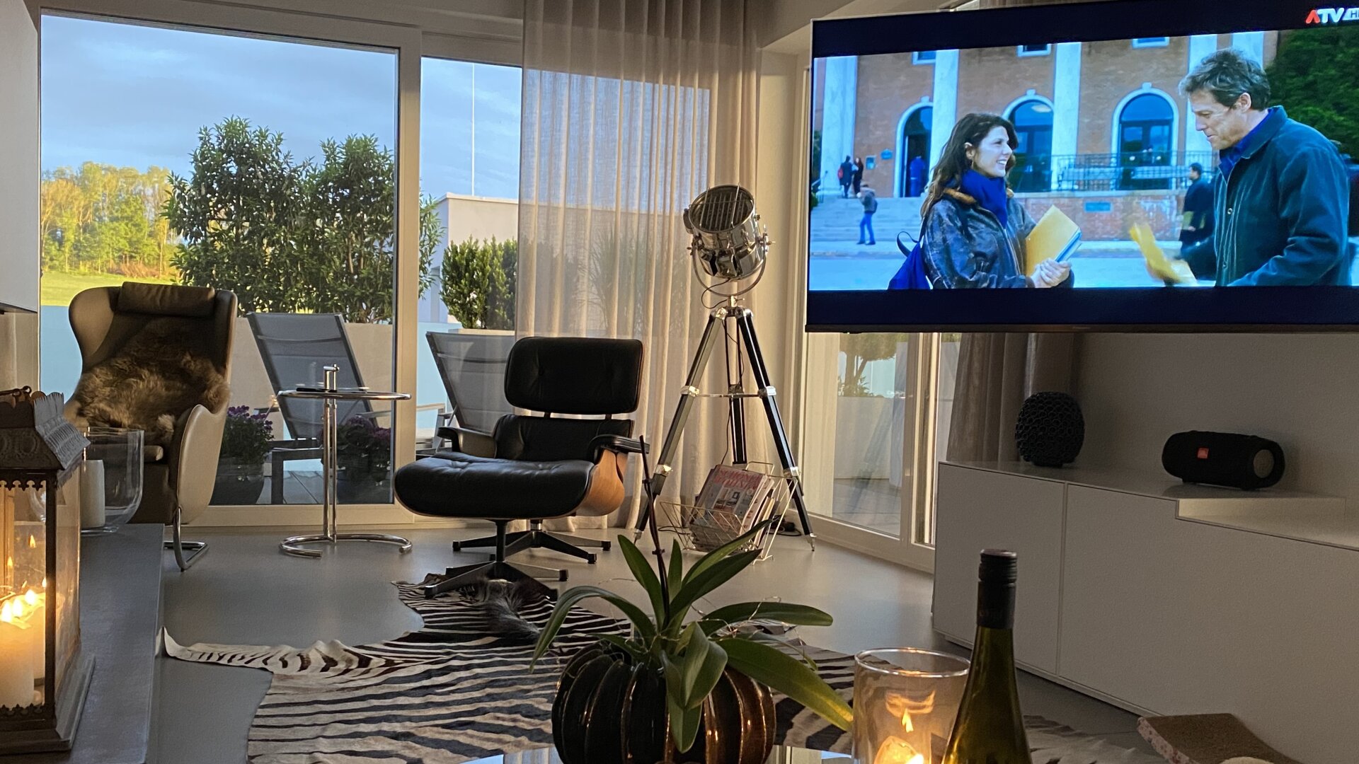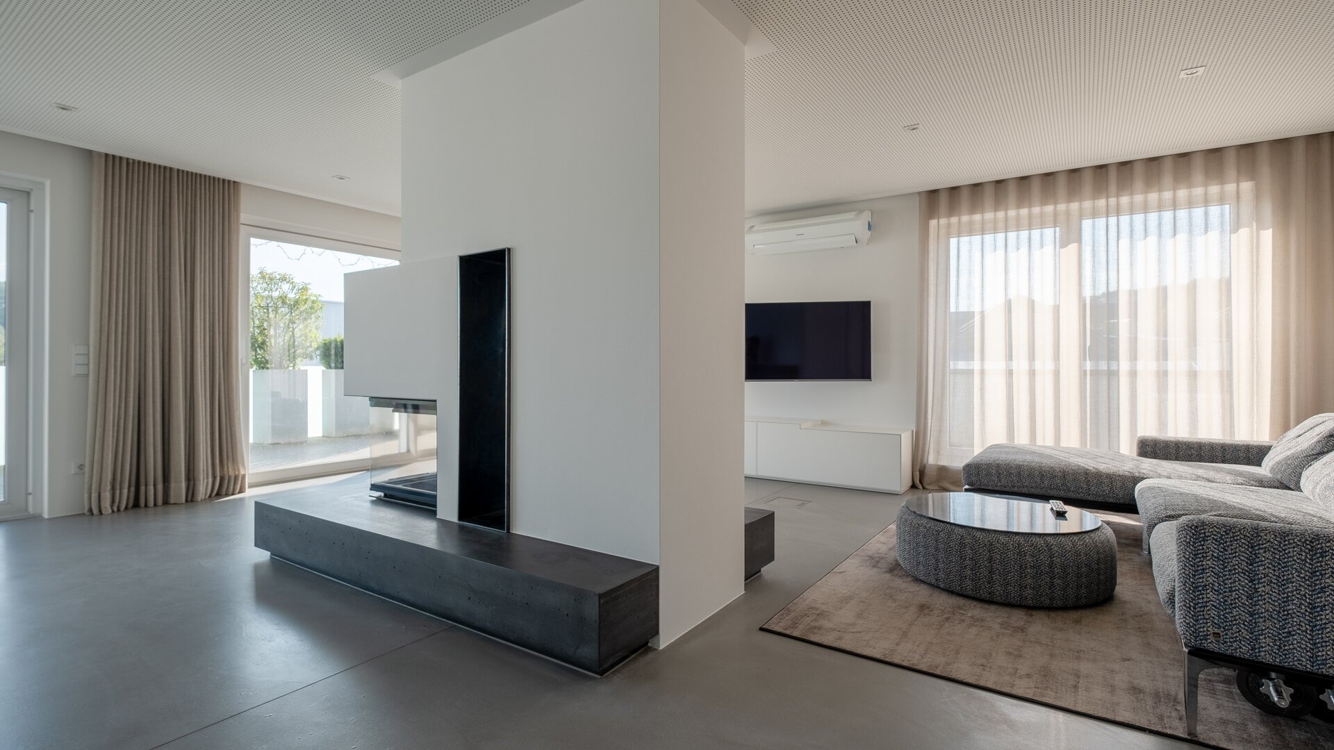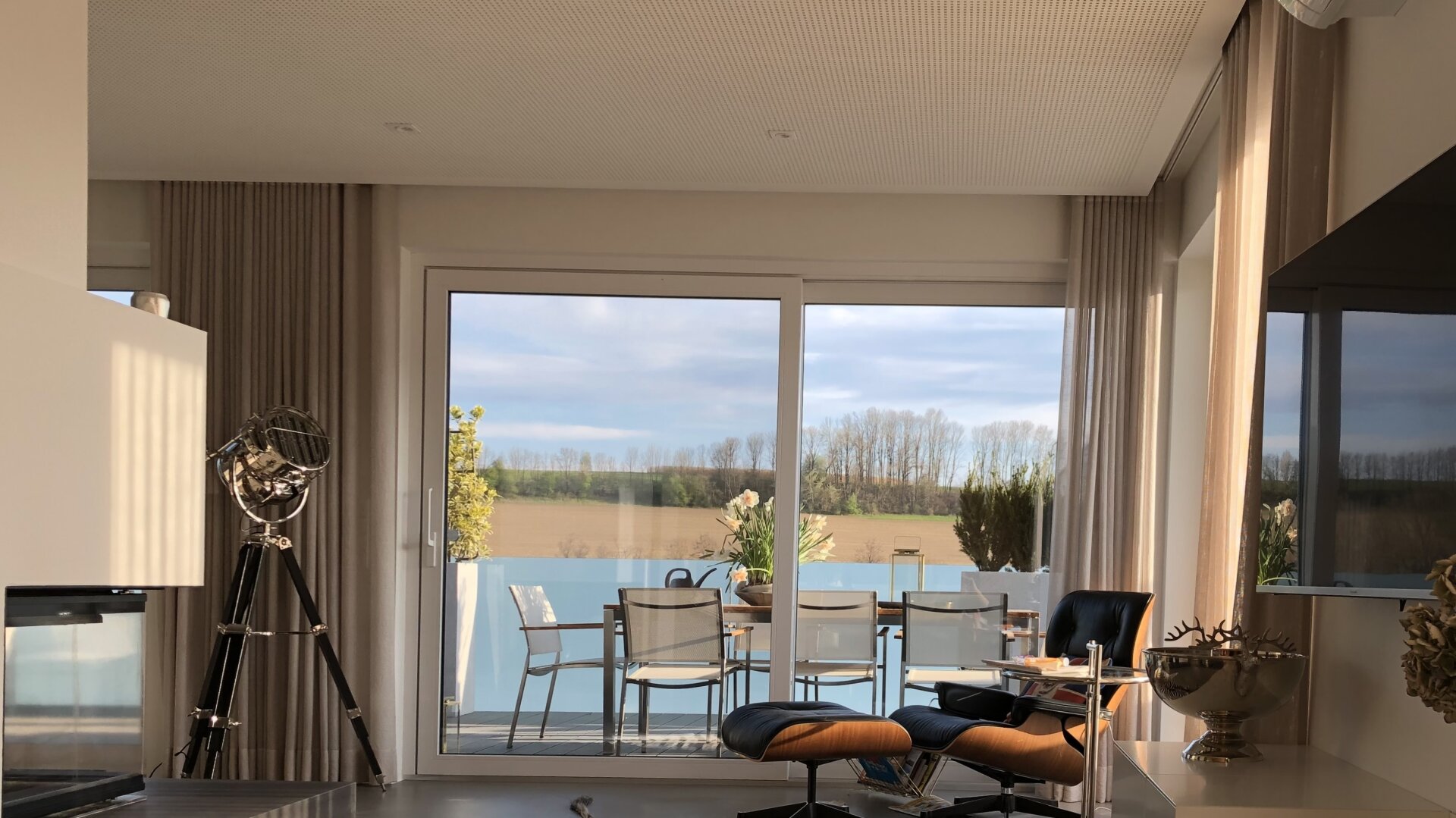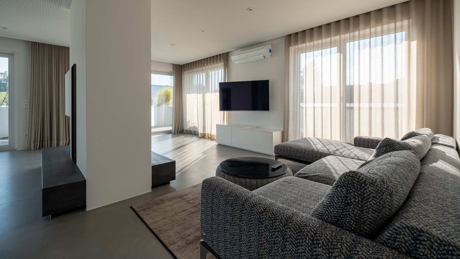 Die elektrischen Raffstores und die Akustikdecke zeichnen diesen Wohnraum besonders aus.